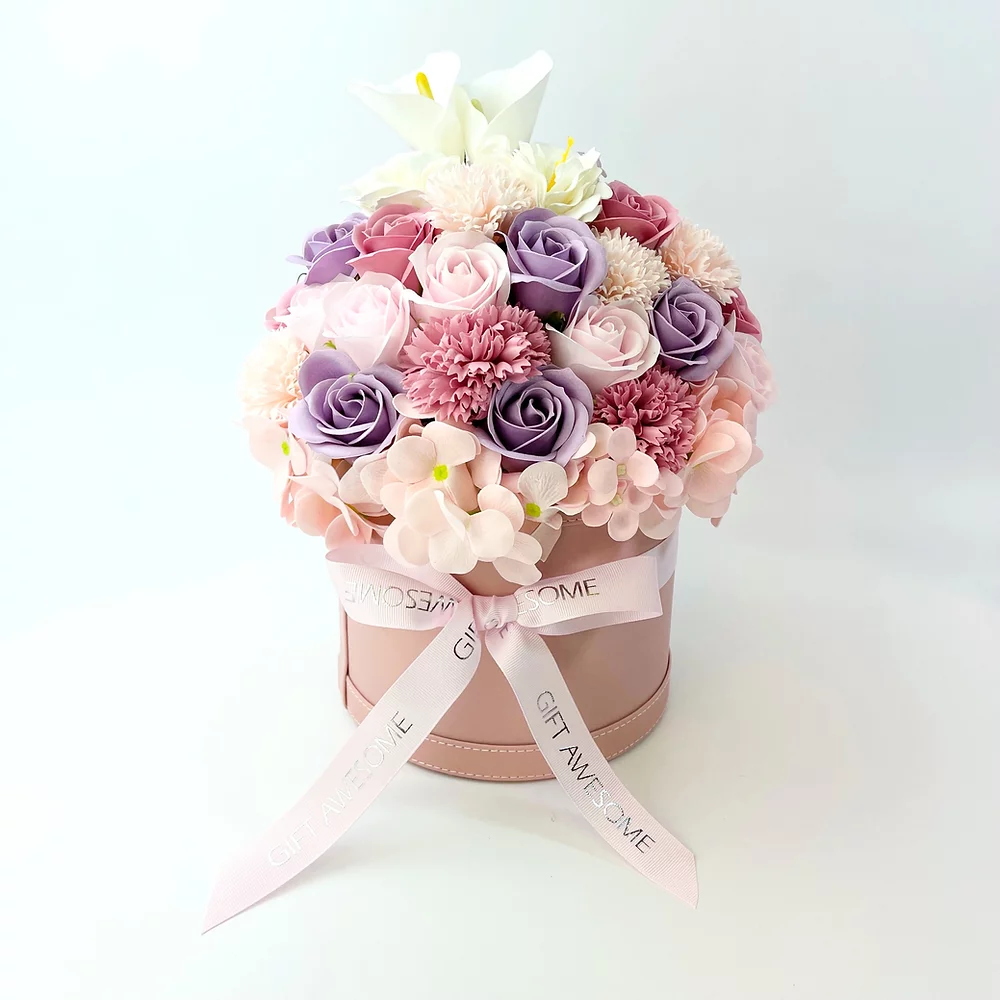 粉紅色和紫色玫瑰巨型肥皂花盒
